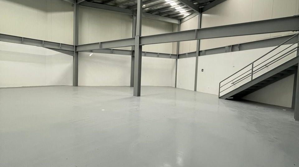 Piso pulido en toda el área, cielo raso de PVC en área exterior.