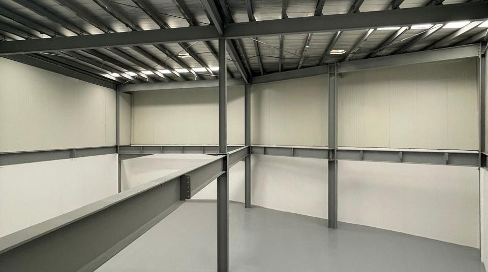 Distribución de la planta baja (área de depósito) y nivel 100 (área de mezzanine).